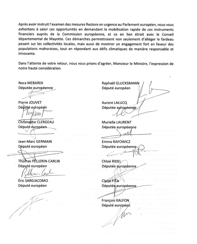 Sous l’impulsion de Nora Mebarek, co-présidente de la délégation française du groupe S&D au Parlement européen, nous avons adressé une lettre au Ministre des outre-mer Manuel Valls afin de demander la mobilisation rapide du Fonds de solidarité de l’Union européenne (FSUE) et l’activation des mesures « Restore » pour soutenir Mayotte.